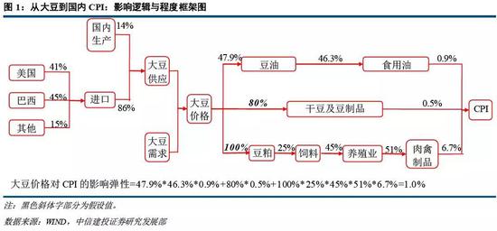 。我们首先测算大豆价格对CPI的影响弹性,然后讨论加征关税后国内大豆价格上涨的幅度,最后估测对美大豆加征关税对国内CPI的影响程度。