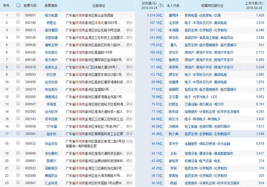 数据来源:同花顺 在珠海的上市公司中,最出名的当属格力电器(50.190,0.00,0.00%),以4月24日收盘价计算,其总市值达到了3019亿元,远远高于第二名,属于电子行业的纳思达(33.030,1.33,4.20%)。