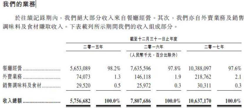 具体来看海底捞业务构成,餐厅的经营贡献是收入的大头,占据营业总收入的九成多,外卖业务和销售调味料包作为补充,尤其是外卖一年也能超过2亿元。