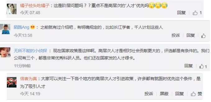 但有网友认为这样的安排可以理解,因为高层次人才的确为社会做出过特殊贡献,享受一些便利也无可厚非。