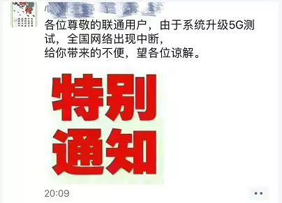 同时,有网友晒出的图片显示:此次断网事件是由于系统升级5G测试造成。