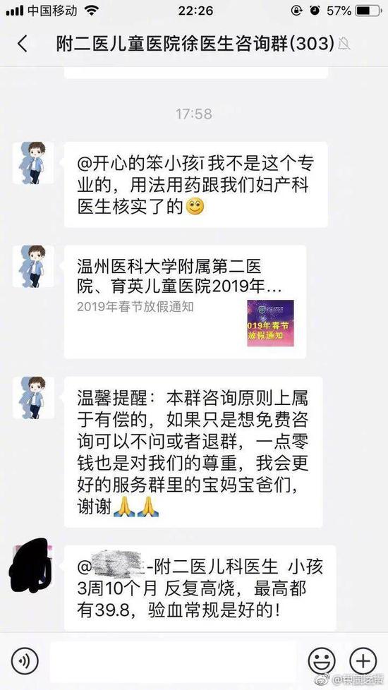 医生在微信群收费咨询 温医大附二院:暂扣所得责令退群