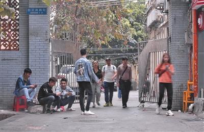 小区内外经常有人坐在凳子上放风,他们拿着对讲机相互沟通,只要有生人或者是车辆进入,放风的人会立即联系各个商家。