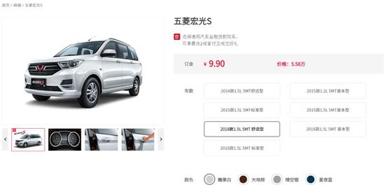 上汽通用五菱官网显示,此次参与“秒杀”活动的新五菱宏光S官方指导价为5.28万-5.58万元,而拼多多上秒杀价仅为3.49万元,约便宜了1.8万元。按照拼多多秒杀页面的信息,参与抢购的消费者需交付999元意向金,完成意向金支付后,凭借收到的核销码前往指定的4S店购车,购车完成后,需在线提交购车资料,平台审核通过后将发放补贴金。