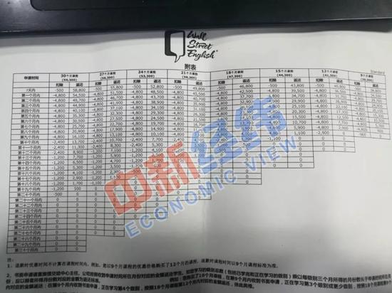 ▲何琳提供的华尔街英语退费规则(即合同中称《附表》)