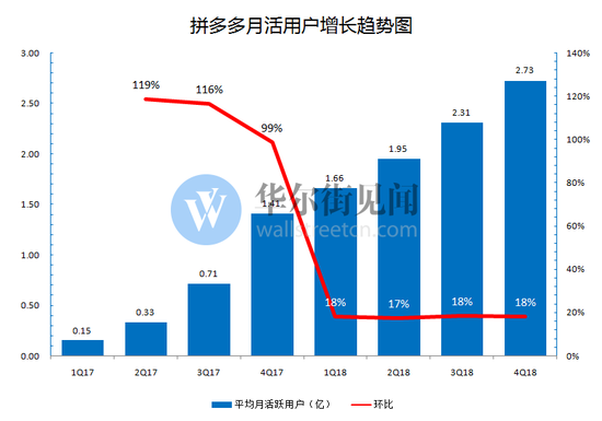 3月13日周三美股盘前,电商拼多多(25.12,-5.31,-17.45%)发布截至2018年12月31日的四季报及年报。