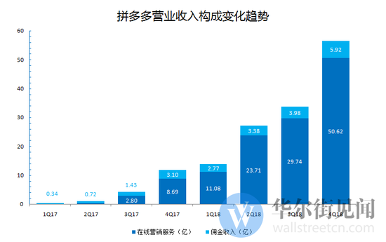 从收入构成来看,在线营销服务依然贡献绝大多数拼多多的收入。