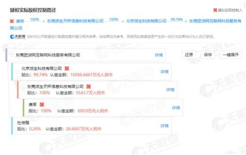公开资料显示,团贷网上线于2012年,是业内规模较大的P2P平台,运营主体东莞团贷网互联网科技有限公司成立于2016年2月(运营主体曾多次变更),法定代表人唐军,大股东为北京派生科技有限公司。
