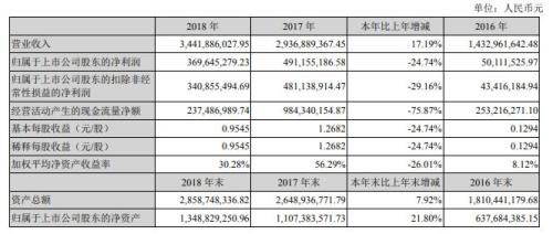 就在昨日晚间,派生科技刚刚公布2018年业绩报告、分配预案及2019年业绩预告,分配预案拟10送5转1派1.25元。财务数据显示,派生信息2018年营收34.4亿元,同比增17.19%;净利润3.7亿元,同比减少24.74%;扣非净利润3.4亿元,同比减少29.16%。经营活动产生的现金净流量2.4亿元,同比大幅减少75.87%。通过出售两家子公司鸿特普惠和鸿特信息咨询,确认投资收益3581.62万元,影响税后净利润增加2,584.93万元。