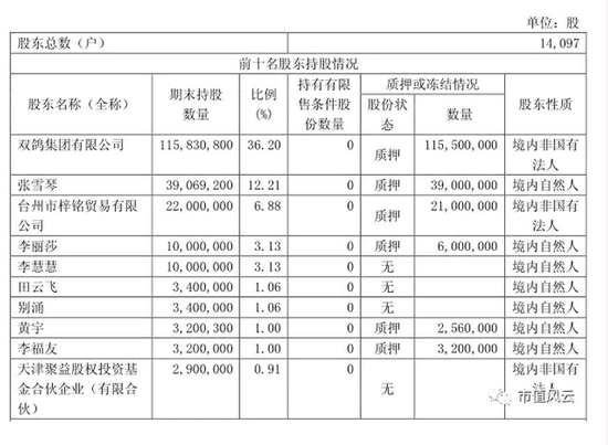 在股票连续跌停的背景下,上市公司5月12日公告,公司控股股东双鸽集团进行了补充质押。