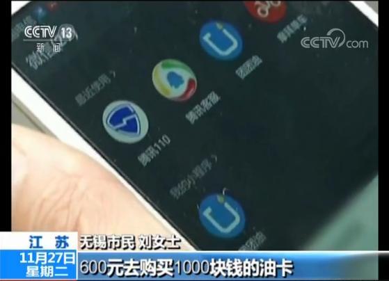 无锡市民 刘女士:双十一 ,大概中午的时候,当时我正在购物,办公室里面有个同事先发了个小程序,600元去购买1000块钱的油卡。
