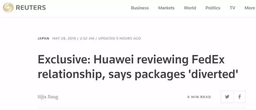 路透社5月28日报道,华为表示目前正在审查与美国联邦快递公司的合作关系。华为之前称,近期这家美国快递公司在没有说明的情况下,将华为的两件包裹转移到美国,并试图将另外两件包裹也转运到美国。