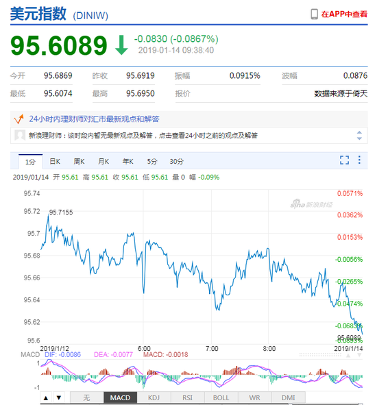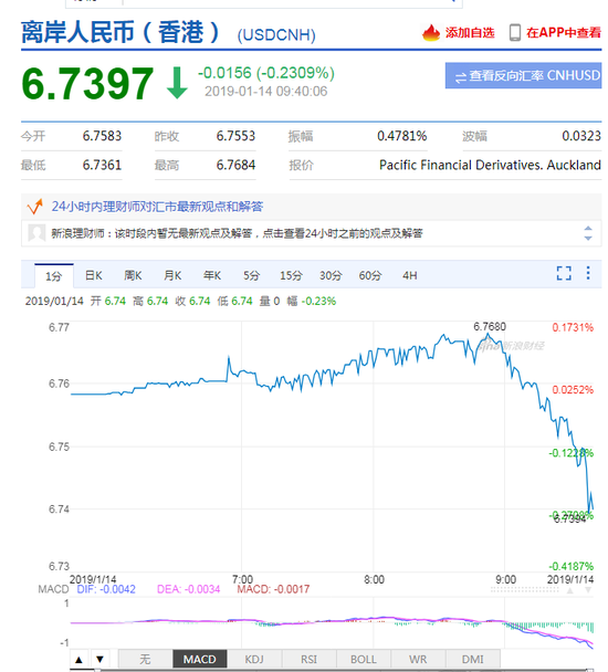 1月14日,美元指数(95.5564,-0.1355,-0.14%)短线快速下挫,在岸人民币(6.7375,-0.0255,-0.38%)升值收复6.74关口,刷新去年7月来高位,日内升值逾200点。