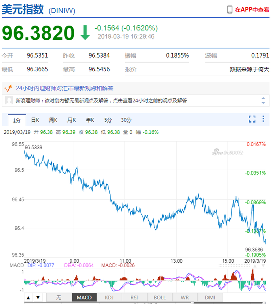 3月19日,美元指数(96.3870,-0.1514,-0.16%)跌势难止,在岸人民币(6.7157,0.0027,0.04%)收报6.7154,贬值31点,上一交易日收报6.7123。