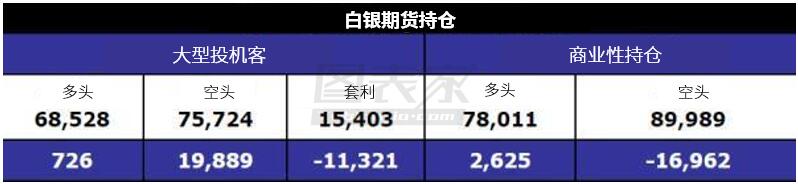 白银投机性持仓在连续几周呈净空仓后短暂转为净多仓,但上周由于空仓激增而重新转为净空仓。