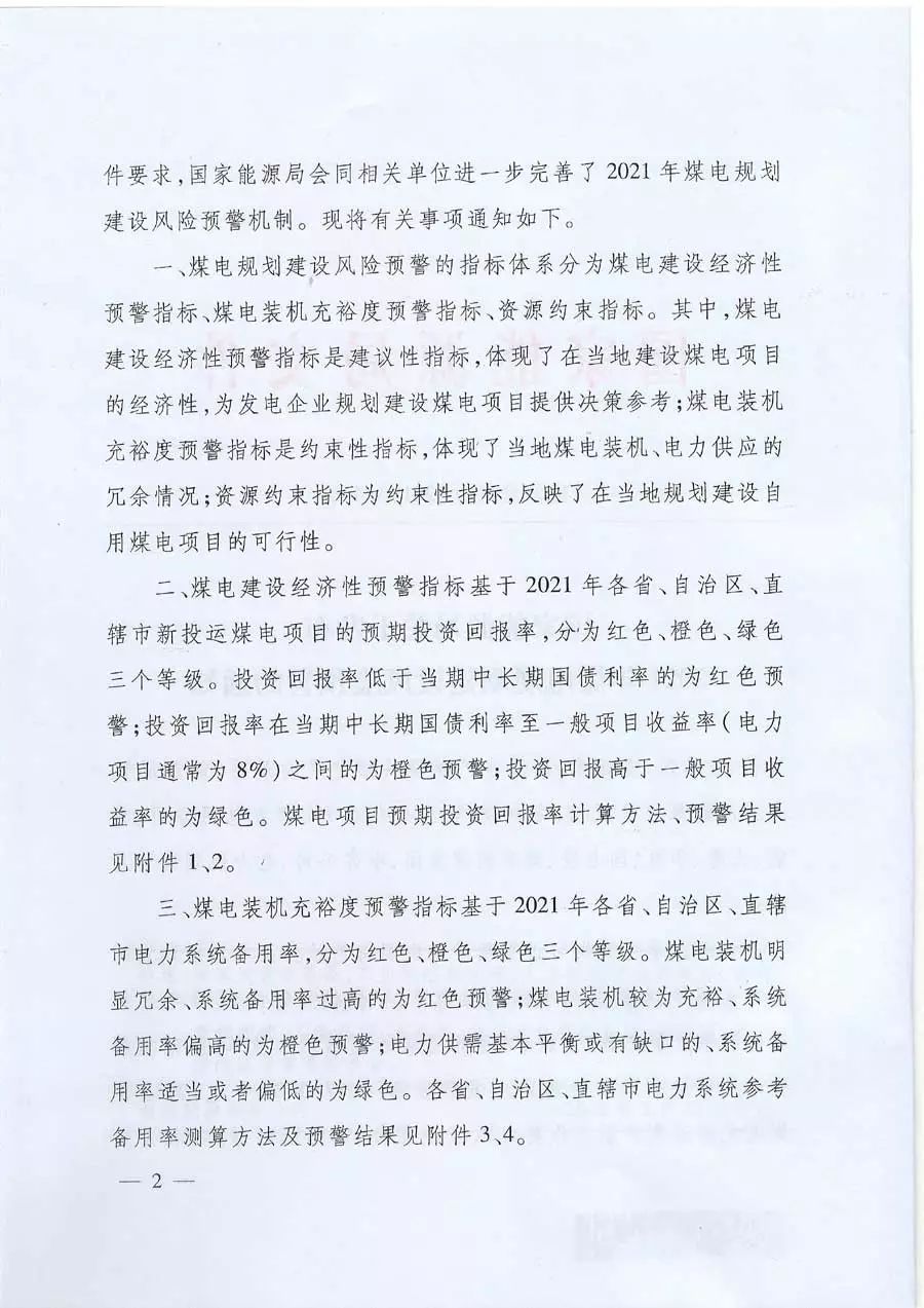 国家能源局关于发布2021年煤电规划建设风险预警的通知