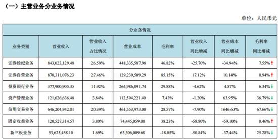受国内证券市场行情影响,西部证券去年经纪业务实现营业收入8.4亿元,同比下降25.70%,股票基金累计交易量占全国市场份额为0.446%,同比下降了8.49%。去年中间业务收入占比达到43.04%,同比提升了3.28个百分点